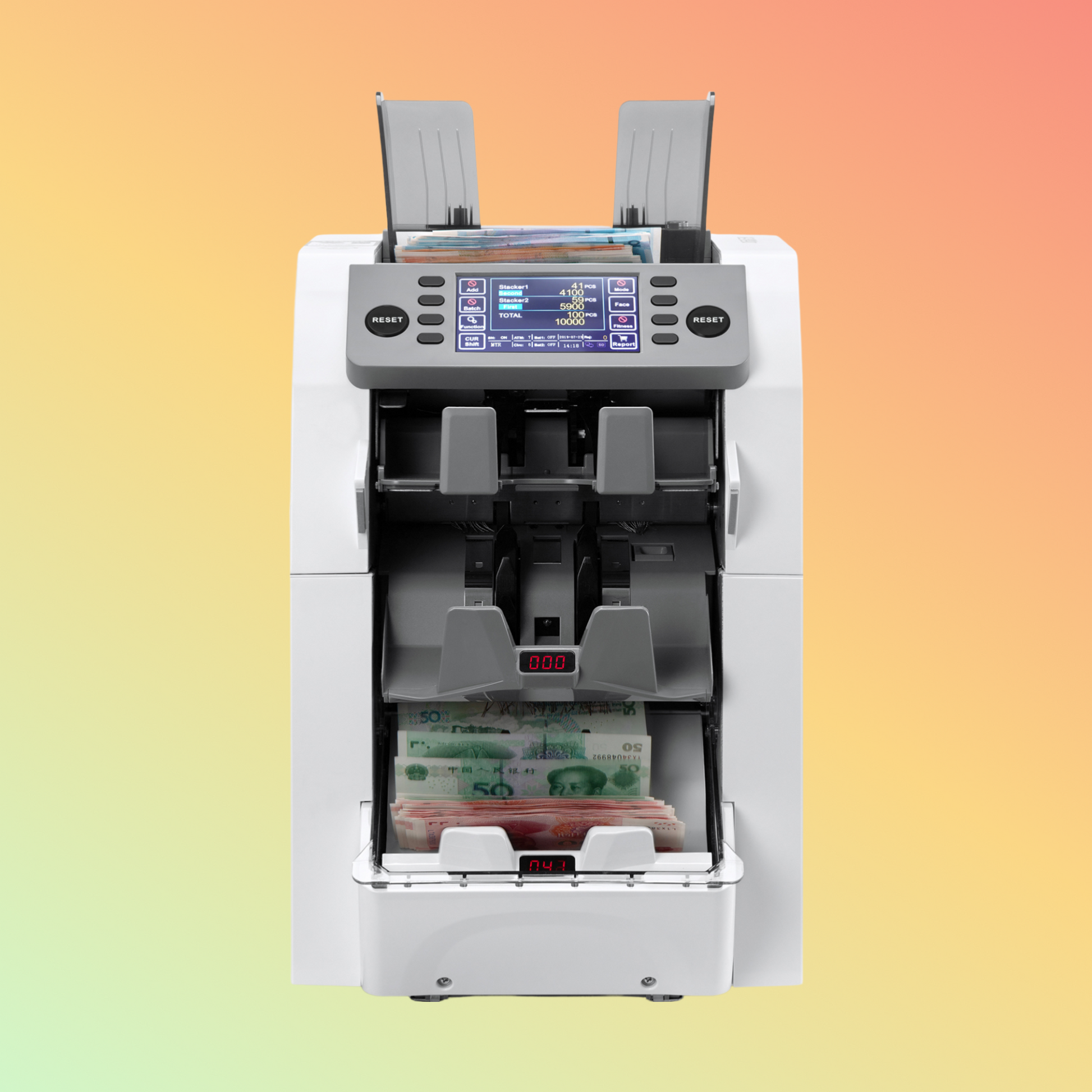 - Operation: Load the banknotes into the hopper, configure the desired settings via the control panel, and start the sorting process.